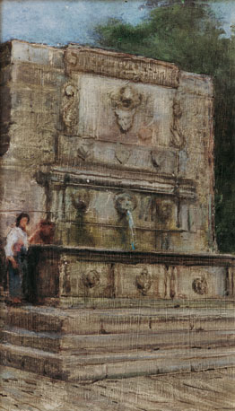 La fontana Marcella – Assisi, Olio su tavola 16x23, 1946